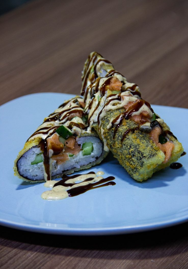 сыр, огурец, угорь, лосось, огурец (немного), соус унаги гамадари